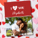 Romántico Corazón me encanta la tarjeta El día de San Valentín roja - Hágale saber que la amas con esta romántica y hermosa tarjeta de El día de San Valentín de collage de 5 fotos para una novia o esposa. Presentando una foto y "te amo" en la parte delantera, personalizando añadiendo su nombre. El interior tiene una foto de página completa y un mensaje romántico, completamente editable. En la parte trasera hay 3 fotos más. Dale una tarjeta que ella valorará para siempre.