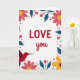 This design shows the words “LOVE you” in the center, with “LOVE” in large red uppercase letters and “you” in a smaller flowing red letter style right beside it. Around the message, flowers and leaves form a frame that reaches in from the edges. You’ll see big pink and yellow blooms, tiny red buds, and deep teal leaves spreading across the border. A small red hummingbird sits near the lower-left area, angled as if it just paused mid-flight. Little red and pink dots are scattered around like bits of confetti or falling petals. The white background makes the reds, pinks, yellows, and teal stand out and keeps the focus on the message. It feels meaningful to give because it says what you might not always say out loud, in a simple way that still feels close and caring 🥰❤️. Hope it helps you share Valentine’s Day feelings with someone you care about.