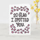 La Romántica tarjeta de píun de amor, titulada "Tan feliz que te vi", es una manera ideal de expresar tu afecto por ese especial "Te amo". Con su diseño de letras distintivo y su divertido patrón de puntos de impresión animal, esta tarjeta hará que su ser querido se sienta apreciado y valorado. Su dulce estilo lindo es perfecto para una novia o pareja, y tienes la opción de personalizar el mensaje, agregando un toque sentimental a tu sentimiento. Elija entre impresiones o una tarjeta digital ecológica. Diseño original de Ana Garza/Kardz Studio. Si tienes alguna pregunta, por favor contacta conmigo a través de la charla de Zazzle.