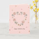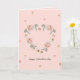 Una tarjeta del Día de San Valentín bellamente diseñada que presenta un delicado corazón hecho de flores suaves rosadas y blancas con hojas verdes apagadas. Acentuada con pequeños corazones de acuarela y el mensaje "Feliz Día de San Valentín", esta tarjeta es perfecta para expresar amor y afecto de manera elegante y romántica.