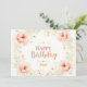 Envía cálidos deseos con un estilo atemporal con esta elegante tarjeta de cumpleaños de acuarela inspirada en el vintage. Una corona circular de suaves rosas de color rosa y hojas de color verde pálido enmarca con gracia el centro, creando un borde floral romántico. Cada rosa está delicadamente detallada con sombreado sutil y un toque de naranja cálido en los pétalos, sobre un fondo cremoso y blanco. "Feliz Cumpleaños" brilla en una escritura caprichosa de color dorado rosa, complementada con pequeños puntos decorativos para un toque extra de encanto. Con su iluminación suave y difusa y su composición equilibrada, esta tarjeta captura perfectamente un estado de ánimo etéreo y sincero, ideal para cumpleaños, notas sinceras o amantes de la papelería floral.