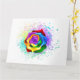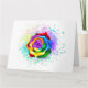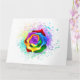 Rosa grande y floreciente con pétalos de arco iris sobre fondo blanco, pintado con salpicaduras de pintura colorida y brillante. 3.ª