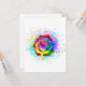 Rosa grande y floreciente con pétalos de arco iris sobre fondo blanco, pintado con salpicaduras de pintura colorida y brillante. 3.ª