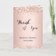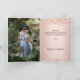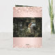 Oro subió, fondo degradado de color rosa, decorado con confeti. Interior: 1ª de sus fotos, tamaño vertical. Su nota de agradecimiento. Parte posterior: 2 de sus fotos, tamaño del paisaje.