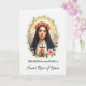 Un diseño gentil y reverente honrando el Día de la Fiesta de San Rosa de Lima, el primer santo canonizado de las Américas. Mostrada en un retrato al estilo acuarela, lleva un hábito dominicano con una suave corona de rosas rosas rosas rosadas, que simboliza su humildad, penitencia y profunda devoción a Cristo. Esta tarjeta ofrece una manera tranquila y llena de fe de recordar su fiesta del 23 de agosto o animar a alguien con su ejemplo de santidad.