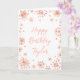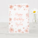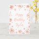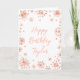 Tarjeta Rosa Dorado Copos de Nieve Feliz Cumpleaños