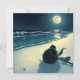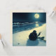 Tarjeta Rosa negro en una playa con luna llena