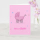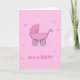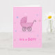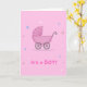 Tarjeta única para dar la bienvenida a un bebé varón al mundo. Diseñada en rosa.