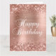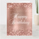 El formato vertical faux brillantemente rosa purpurina de oro en el borde superior e inferior sobre un falso color rosa azul rosa color oro cepillado estilo metalizado oscuro Relieve metalizado gráfico de arte digital. Se puede cambiar el color del gráfico de texto Feliz Cumpleaños. Los colores principales son rosa, rubor, oro rosa, negro y blanco. Mantener o eliminar el mensaje de texto interno y la firma.