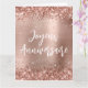 El formato vertical faux brillantemente rosa purpurina de oro en el borde superior e inferior sobre un falso color rosa azul rosa color oro cepillado estilo metalizado oscuro Relieve metalizado gráfico de arte digital. Personalizar el texto del aniversario de Joyeux según sea necesario para su evento especial. Los colores principales son rosa, rubor, oro rosa, negro y blanco. Mantener o eliminar el mensaje de texto interno y la firma.