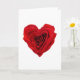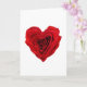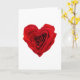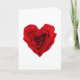 Ilustracion romántico con flores rojas en forma de corazón, con gotas de agua sobre un fondo blanco limpio.