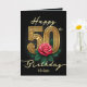 Tarjeta Rosa Roja y Oro Filigree Número 50 cumpleaños