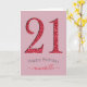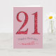 La moderna tarjeta de cumpleaños 21 presenta el falso purpurina rojo número 16 en un fondo rosa damasco. Personalice con un nombre y un mensaje dentro.