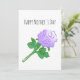 Tarjeta hermosa con una rosa violeta en la parte frontal.