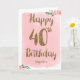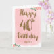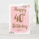 Tarjeta Rosa y Oro Feliz 40 cumpleaños