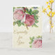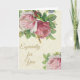 Hermosa tarjeta espiritual de ramo con Rosario Santo, Rosas y Crucifijo en la parte delantera.