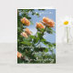 Una tarjeta de saludo de bonito 'Get Well from Hip Surgery', con una fotografía de rosas rocosos y cremosos alquimistas rosados contra un brillante cielo azul de verano. Puede personalizar el mensaje interno.