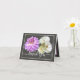 Hermosas rosas blancas y dahlia morada rosada florida ramo de flores en un fondo de color. El texto de saludo utiliza una tipografía de guión atractiva. Las flores cubren la parte delantera de esta tarjeta de felicitación que puede utilizarse como tarjeta de agradecimiento, tarjeta de cumpleaños o cualquier otra tarjeta de tu elección. ¡personalizar con tu texto y/o fotos para convertirlo en una especie!