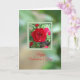 Esta tarjeta de Rosas de té Happy Valentine Day Card incluye un armario de rosas de té rojos en plena floración, goteando con las gotas de lluvia frescas de una ducha por la tarde, y dice "Feliz Día de San Valentín" En su interior, "Te amo, te amo, ¡te amo!"