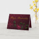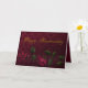 Fondo adamascado rojo profundo con un borde inferior de encaje y dos rosas ensangrentados, además del texto metálico de oro "Feliz Aniversario" hace de esto una elegante tarjeta de saludo para sus mejores deseos de snailmail. Añade tu propio texto interno y completa esta tarjeta única!