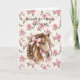 Tarjeta Rosas rosadas flores hermoso caballo lazo rosa cum