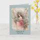 Esta impresionante tarjeta de felicitación vintage angelical presenta un hermoso ángel con cabello castaño largo y ondulado, vestido con un vestido de color rosa pastel, rodeado de un exuberante jardín de rosas rosadas. La tarjeta es perfecta para cualquier ocasión, con la opción de personalizar el mensaje frontal para decir "Feliz Cumpleaños", "Pensando en ti", o cualquier leyenda que desees. El interior de la tarjeta también se puede personalizar para incluir tu propio mensaje sincero.