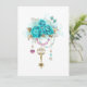 Llave de oro antiguo con rosas turquesa de moda decorados con hojas de oro blanco y cuentas rosas y azules. Color de moda. Rosas turquesas. Oro blanco. Tifanía azul.
