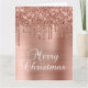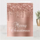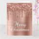 Tarjeta Rose Gold Glitter Drips Metallic Merry Christmas