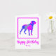 Silueta rotulier de perro con un patrón abstracto moderno y brillante de color rosa y azul. El divertido mensaje de cumpleaños dentro puede cambiarse a lo que quieras. Personaliza la tarjeta con el nombre en la parte delantera.