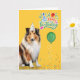 Tarjeta Rough Collie Dog Party Hat Yellow Birthday