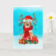 Tarjeta Rough Collie en la nieve con regalos de Navidad