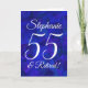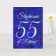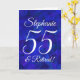 Royal Blue 55 y Retirada Tarjeta de Jubilación Feliz Esta es una elegante tarjeta especial de retiro de arte Royal Blue especialmente diseñada para tus amigos que están cumpliendo 55 años y se están jubilando! Personalice esta tarjeta con su nombre y todos los nombres de sus compañeros de trabajo. Su nombre también se añadirá al interior de la tarjeta y usted puede personalizar el interior con su(s) nombre(s) como donador de regalo/tarjeta. Par esta carta con un tazón de retiro o regalos de nuestra tienda! A tu amigo le encantará esta tarjeta de retiro elegantemente diseñada.