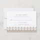 Diseñada para coordinar con nuestro boda árabe y las invitaciones a eventos, esta elegante y lujosa carta de respuesta en tono champán y bronceado presenta un borde inferior geométrico de inspiración marroquí. Añade tu fecha RSVP y responde texto en color grisáceo. Recomendamos imprimir este estilo en el papel de Luxe Champagne Shimmer para un acabado luminoso y lujoso aspecto metálico.