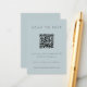 Tarjeta RSVP azul claro y costero con código QR