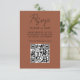 Añada elegancia terrenal a su suite boda con esta tarjeta RSVP con temática de terracota, perfecta para celebraciones rústicas, boho o botánicas. Con un suave fondo de terracota con una moderna tipografía de personalizable negro, también hay un espacio dedicado a un código QR para facilitar la respuesta a sus huéspedes. El lado inverso está adornado con un delicado patrón de hojas de ginkgo, atando tu papelería junto con un ambiente cohesivo y orgánico. Ideal para bodas de otoño, ceremonias de jardín o eventos bohemios, esta tarjeta combina el diseño minimalista con el encanto natural.