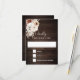 Presenta un toque de elegancia rústica a tu papelería boda con nuestra hermosa tarjeta RSVP Wedding. Diseñada con un encantador fondo rústico de madera, esta tarjeta resume la esencia de una acogedora celebración otoñal. Adornar la parte superior de la tarjeta es un delicado arreglo de flores acuarelas, meticulosamente escogido en una paleta de colores neutros caídos, simbolizando la belleza natural y de la tierra de la temporada. Cada flor está pintada con meticulosa atención a los detalles, creando una armoniosa mezcla de colores que evoca la calidez y la riqueza del otoño. Esta tarjeta RSVP complementa perfectamente a un boda de temática rústica, invitando a sus huéspedes a responder con estilo. Es una manera exquisita de reunir a sus seres queridos para su día especial, combinando la sencillez del encanto rústico con la elegancia de la excelente artesanía.