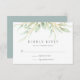 Diseñada para coordinar con nuestra colección de bodas Botánicos Aéreos, esta tarjeta RSVP de color verde y blanco de moda presenta un spray de color verde pálido en color de agua, sobrepasando la fecha de respuesta deseada y el personalizado acepta y rechaza la redacción.