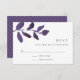 Diseñada para coordinar con nuestra colección Pressed Botanical boda, esta tarjeta RSVP de ciruela de moda y blanco presenta un único resorte de follaje botánico de color violeta violeta, superando la fecha de respuesta deseada y la redacción de aceptación y declinación del personalizado.