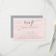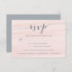 Nuestra tarjeta Chiffon RSVP de color gris y negro presenta un fondo acuarela en tono puro de tonos rosa rubor, acentuado con caligrafía de moda y letras de serif en pizarra polvorienta. Personalice la fecha deseada de RSVP, el personalizado acepte/rechace la redacción y escriba las opciones entre las que los huéspedes pueden elegir. Diseñado para coordinarse con nuestra suite de invitados a la boda Chiffon en Rubor.