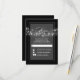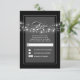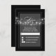 Cadena de luces casan tarjetas RSVP con caligrafía en blanco y gris negro y luces de trineo colgando de la palabra RSVP.