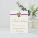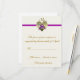Elegante tarjeta de respuesta RSVP color púrpura y dorado, con hermosos gráficos de dos pavos reales coloridos dentro de un corazón decorativo. Personalizar el texto a sus necesidades, cambia el estilo del tipo de letra del texto, el color y el tamaño, se mueve e incluso agrega más campos de texto si es necesario.