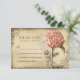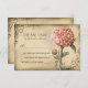 carta rústica de respuesta de boda vintage con dos hermosas flores de peonía rosada dibujando sobre el fondo de papel antiguo rodeado de acentos floridos y rápidos.