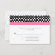 Tarjeta de respuesta RSVP de boda de bonito, hecha en blanco, con puntos de polka en blanco y negro, en la parte superior e inferior. Los gráficos de una cinta rosa agregan un acento dulce. El texto está listo para personalizar con su información.