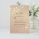 Elegante, rústico, burdeos y rosa tarjeta RSVP de boda dorada con encaje floral dorado, luces de cuerda y escritura moderna de caligrafía.