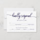 Tarjeta RSVP de Boda de caligrafía blanca azul de marina