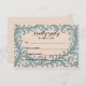 Con un guiño a la elegancia clásica, esta tarjeta RSVP está diseñada para aquellos que prefieren la nota manuscrita, el ritual silencioso y personal de escribir la respuesta. La disposición frontal deja un espacio generoso para los nombres, la asistencia y las selecciones de comidas, lo que evoca un sentido de gracia y propósito. Su superficie, ligeramente texturada o lisa como la seda, dependiendo de la elección del papel, es un recordatorio táctil de la ocasión trascendental para la que se ha diseñado. Esto es más que una tarjeta de respuesta —es una conversación sentida entre invitados y anfitriones, tan atemporal como los votos escritos a mano. El lado inverso lleva un monograma y una fecha boda grabada en un elegante tipo de letra de guión. Sin adornos ni elementos de borde, la tipografía evoca la esencia de la simplicidad refinada. Este detalle silencioso sirve como un eco suave de la identidad de la pareja —romántico pero compuesto, grabado en la memoria a través de letras cuidadosamente elegidas y el simbolismo atemporal de las iniciales unidas.