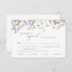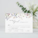 Tarjeta RSVP de boda de flor silvestre de bonito con opciones de comida que incluye gráficos florales en tonos suaves azul, rosa, lila, amarillo y verde y una fuente moderna. Parar con cualquier cosa de la colección ELODIE para tener un aspecto cohesivo. Este diseño ha sido presentado en el Boda Sparrow.