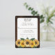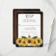Envíe a los huéspedes una sencilla y elegante tarjeta RSVP Wedding de boda rustica con su invitación. El diseño de la tarjeta de respuesta presenta un fondo rústico de madera con un elegante ramo de girasoles. Personalice con la fecha de respuesta y las opciones de menú. También hay material de boda adicional disponible con este diseño.
