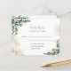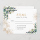 Un fondo blanco adornado con vegetación eucalipto, hojas doradas y purpurinas de imitación dorada. Personalice y agregue la respuesta por fecha y sus nombres.