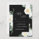 Asegúrate de que tus huéspedes respondan con estilo con la tarjeta RSVP de la Boda de Rosas Blancas Black Elegant. Esta sofisticada tarjeta presenta sorprendentes rosas blancas con un elegante fondo negro, encarnando una elegancia atemporal que complementa el tema boda. Perfecto para invitar a los clientes a confirmar su asistencia, añade un toque de moda a su colección de papelería. Cada tarjeta RSVP no sólo sirve para un propósito práctico sino que también refleja su historia de amor única, creando anticipación para su día especial y dejando una impresión duradera.